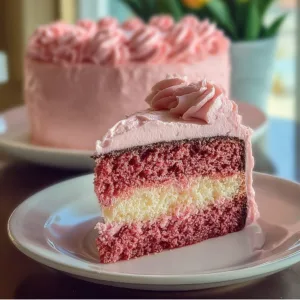 After baking, the cake layers are cooled, frosted with smooth cream cheese frosting, and stacked into a beautiful pink masterpiece. This process may sound fancy, but it’s surprisingly easy and perfect for bakers at any level. Whether you’re looking for casual cake recipes or a more polished dessert for a party, this one checks every box.