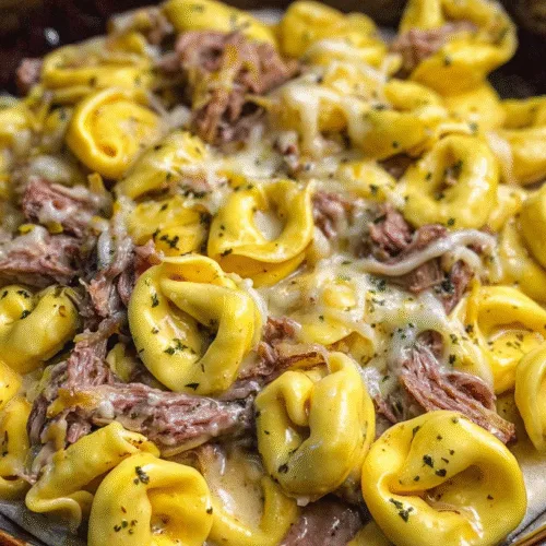If you love rich, comforting, cheesy pasta dinners, this Slow Cooker Cheesesteak Tortellini will instantly become a repeat favorite. It combines all the classic flavors of a Philly cheesesteak—tender meat, peppers, onions, and melty cheese—then transforms them into a creamy, cozy pasta dish that cooks hands-free in your slow cooker.